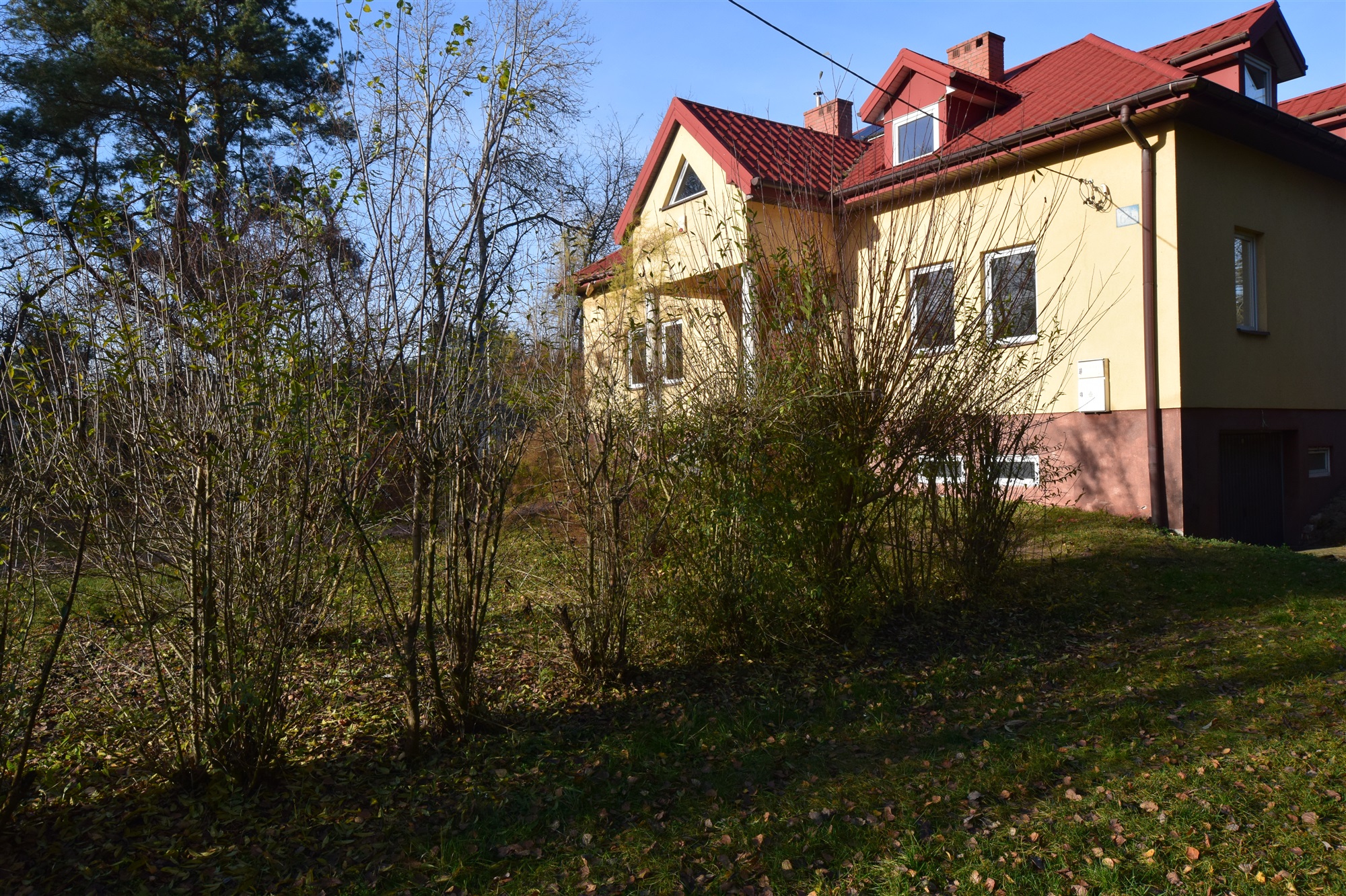 Teren wokół domu jest częściowo zagospodarowany i stanowi doskonałą bazę do własnej aranżacji. Pozostała część działki porośnięta młodymi drzewami tworzy naturalną przestrzeń sprzyjającą prywatności i kontaktowi z naturą.