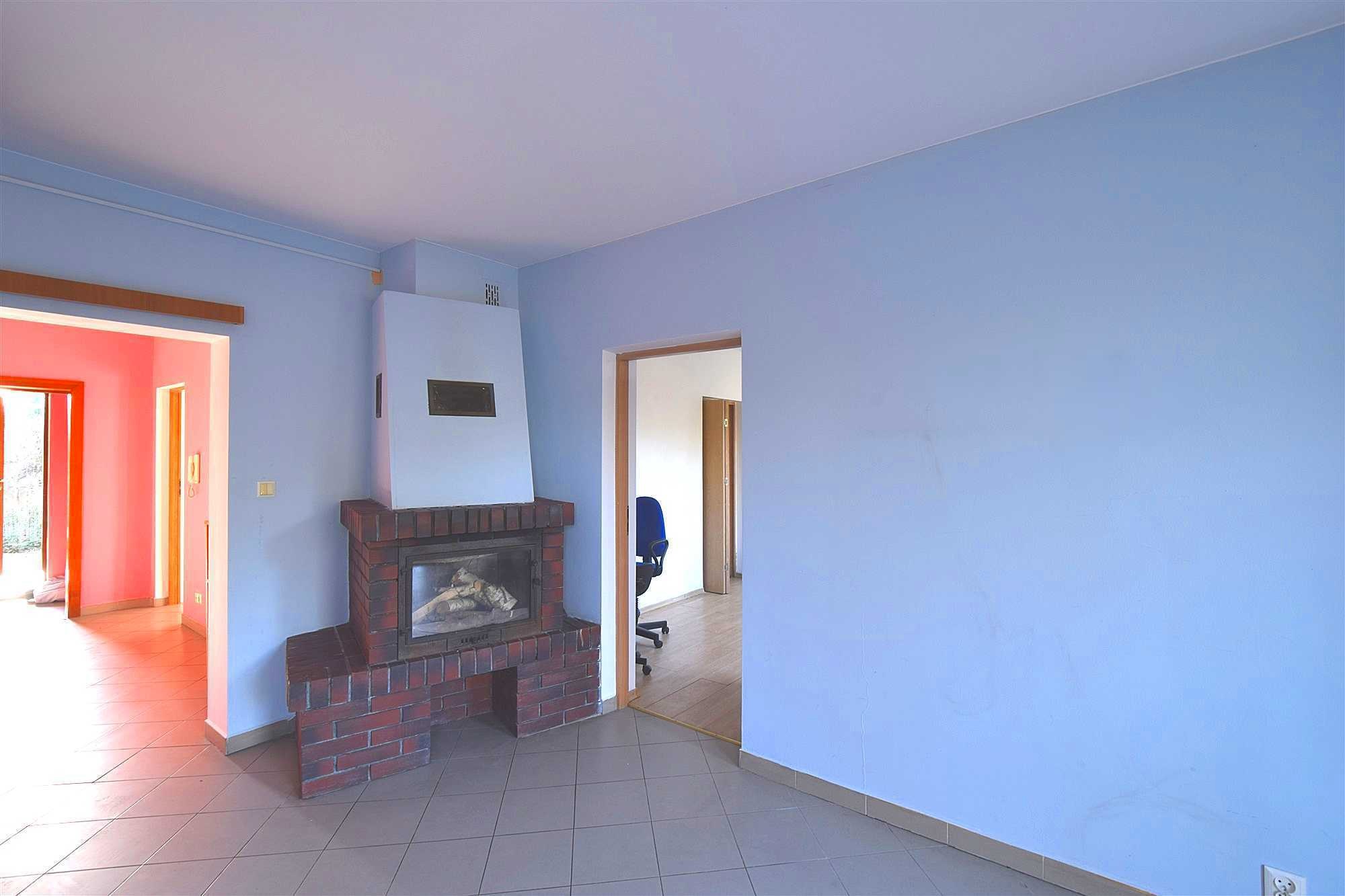 - salon z kominkiem i wyjściem na ogród,
