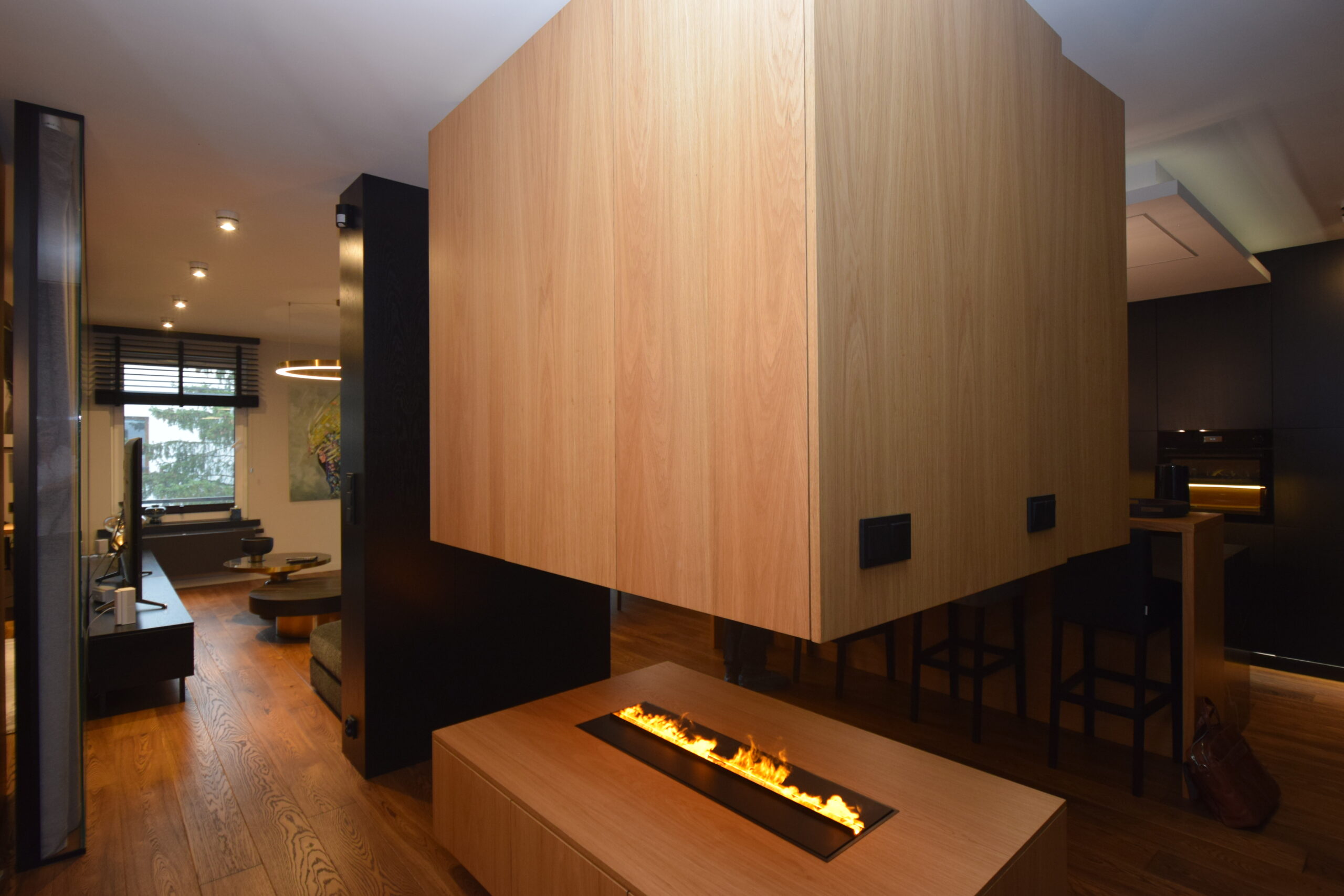 - biokominek w hallu, nadający wnętrzu wyjątkowego charakteru,